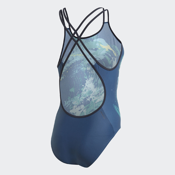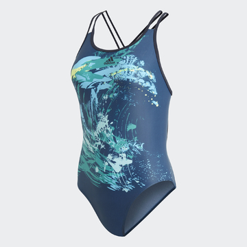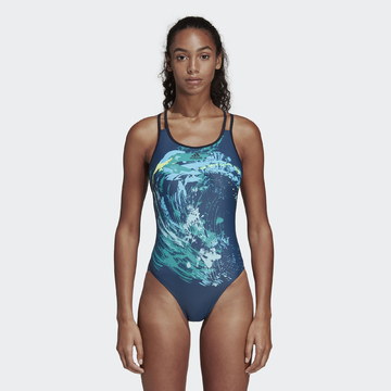 Potisk těchto plavek se inspiroval krásou mořských vln. Jsou vyrobené z tkaniny odolné vůči chloru a obsahují přízi z recyklovaných rybářských sítí a nylonového odpadu. Plavky jsou určené pro trénink a pyšní se stylovými zdvojenými ramínky.